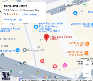 地址: 銅鑼灣 恆隆中心 8樓08室電話: 2388-6910辦工時間: 星期一至五 11:00 ~ 19:00星期六日: 11:00am ~ 4:00pm公眾假期: 休息