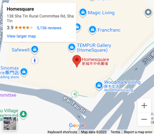 地址: 沙田 新城市中央廣場一期17樓16室電話: 2388-6920辦工時間: 星期一至五 11:00 ~ 19:00星期六: 11:00am ~ 4:00pm星期日/公眾假期: 休息